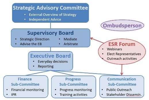 The everyday running of the ETN is coordinated by the Executive Board, which is made up of the 7 Work Package leaders. The Supervisory Board consists of a representative from each beneficiary/partner plus 2 annually elected representatives from the ESR Forum.